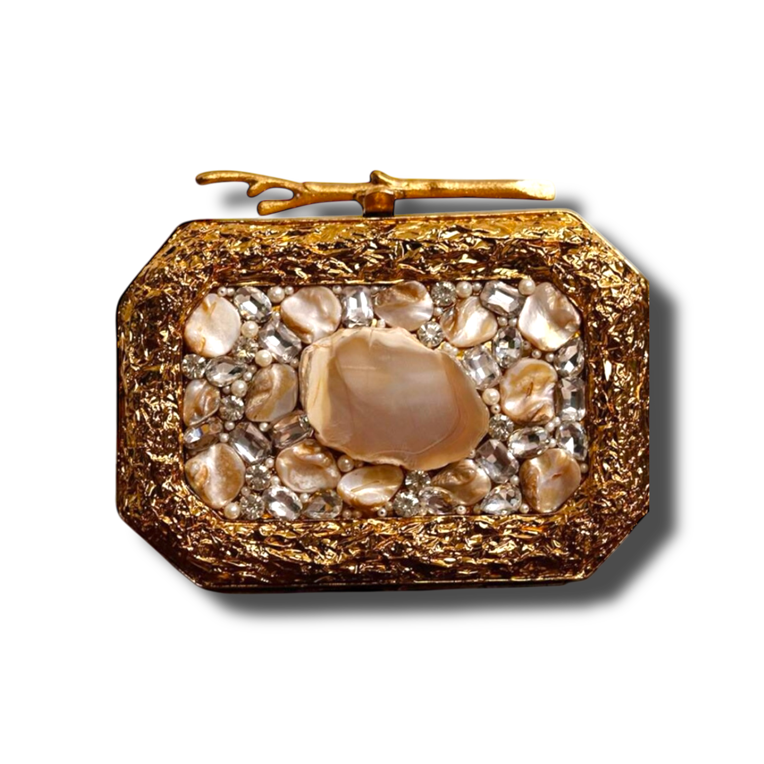 This clutch is made with premium brass and comes with a sling chain for added versatility. It's a stylish and practical accessory for any occasion, adding a touch of luxury to your outfit.
