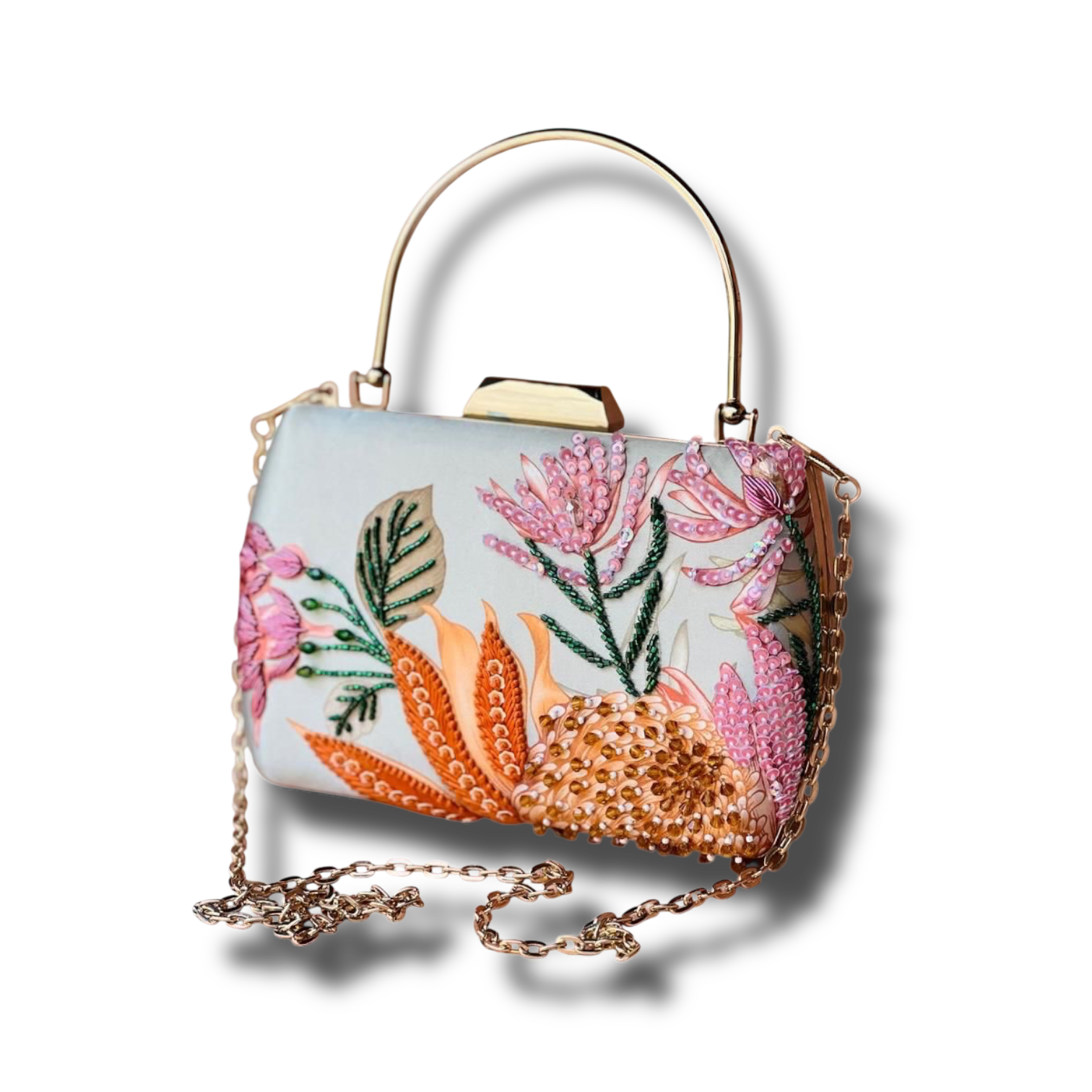 Elevate your style with our Floral Clutch, designed to complement both Indian and Western outfits effortlessly.
