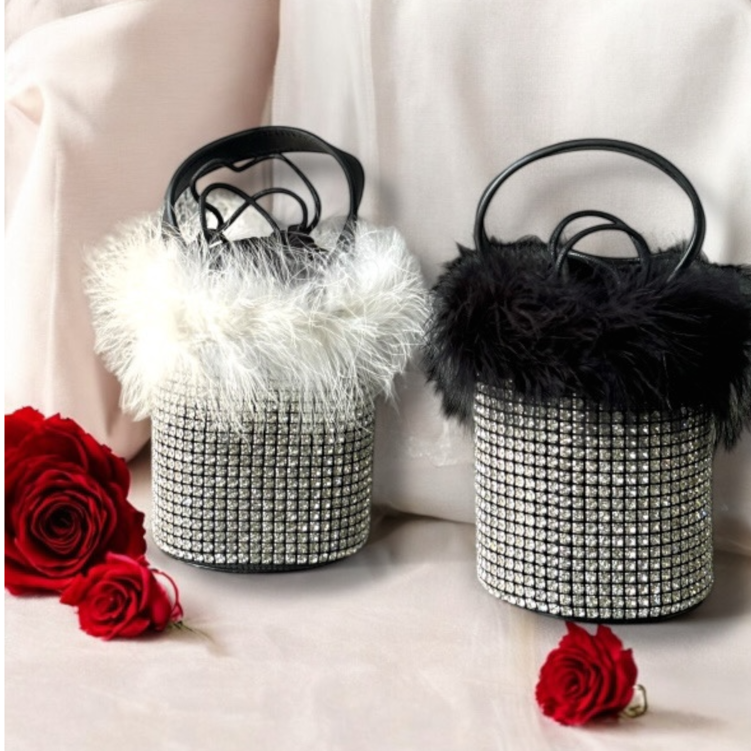 Its unique bucket shape and luxurious fur material add a touch of glamour and sophistication. With a glitter finish, this bag is sure to make you stand out while providing ample storage space for all your party essentials.
