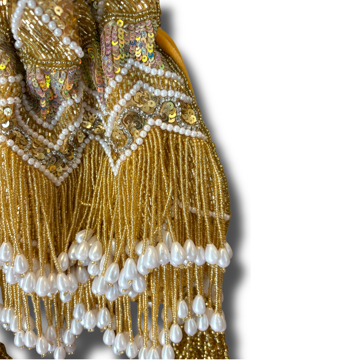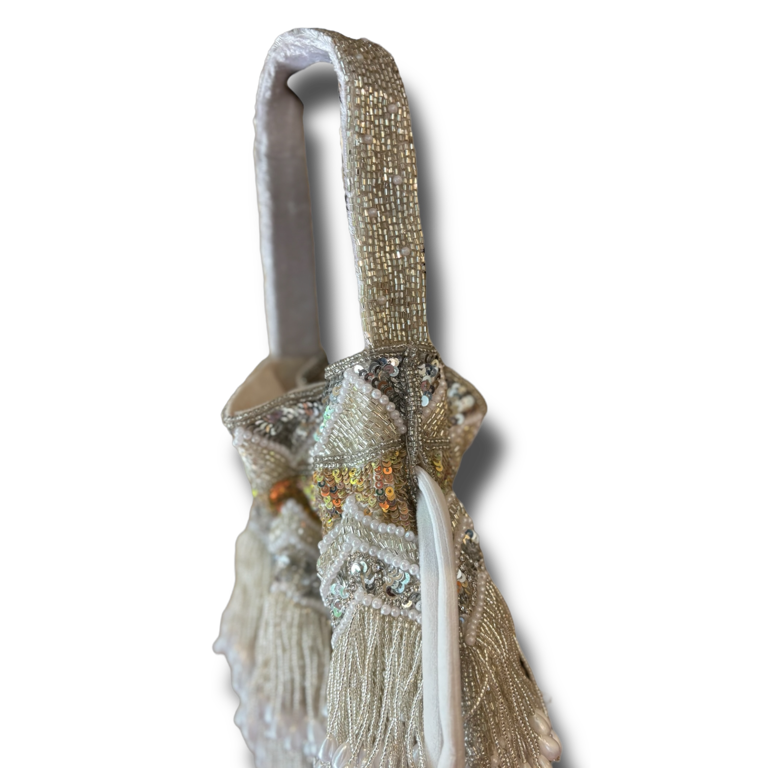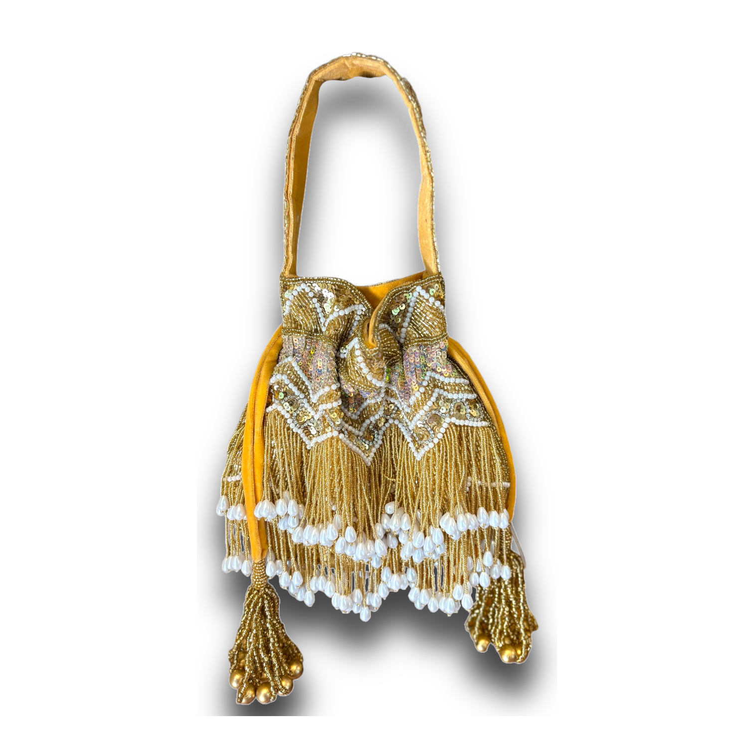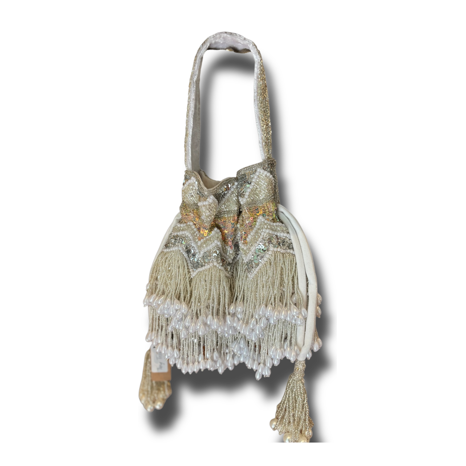 The Jhallar Potli is the perfect accessory for your wedding day. Not only is it spacious enough to hold all of your essentials, but it is also made with high-quality pearls, making it a durable and long-lasting choice.