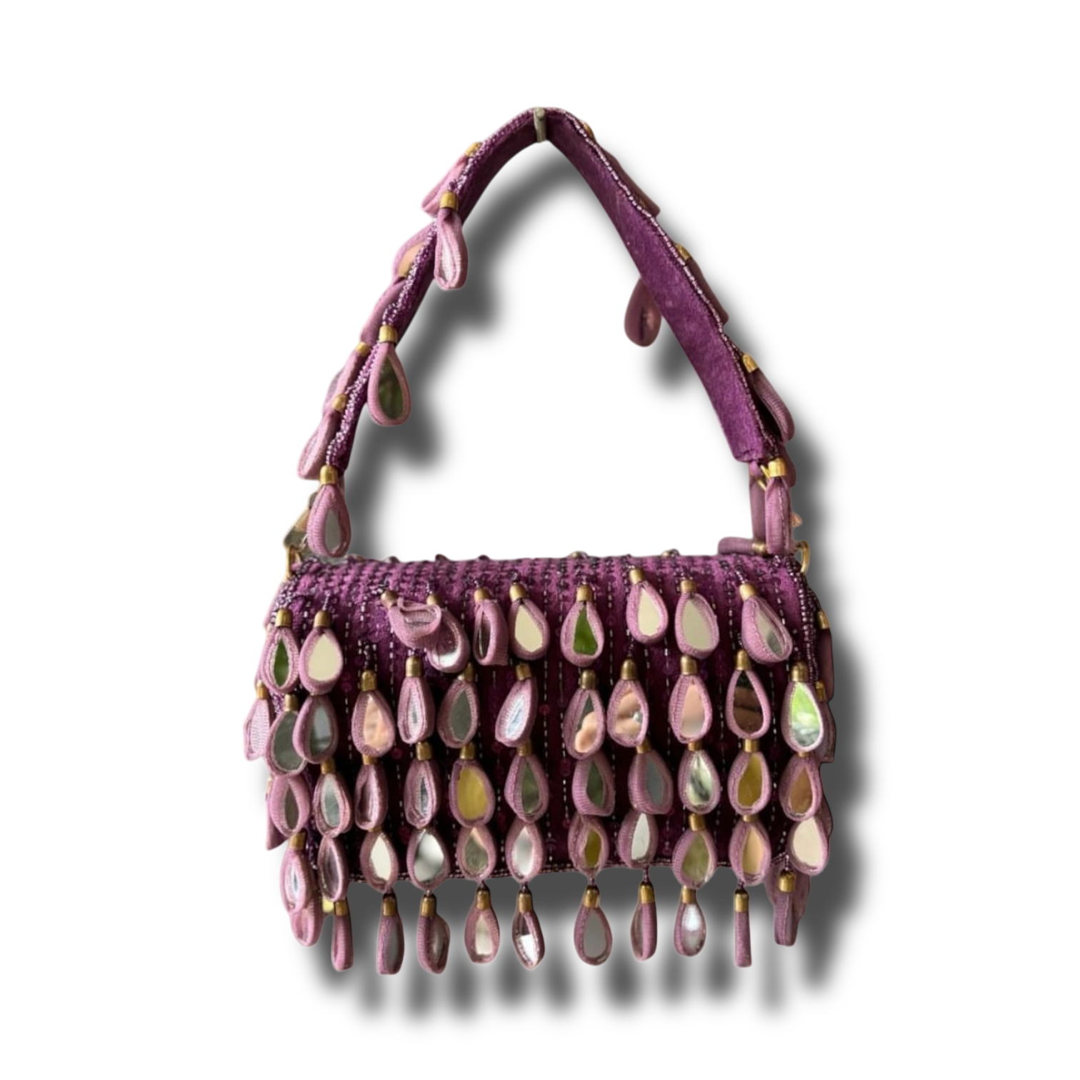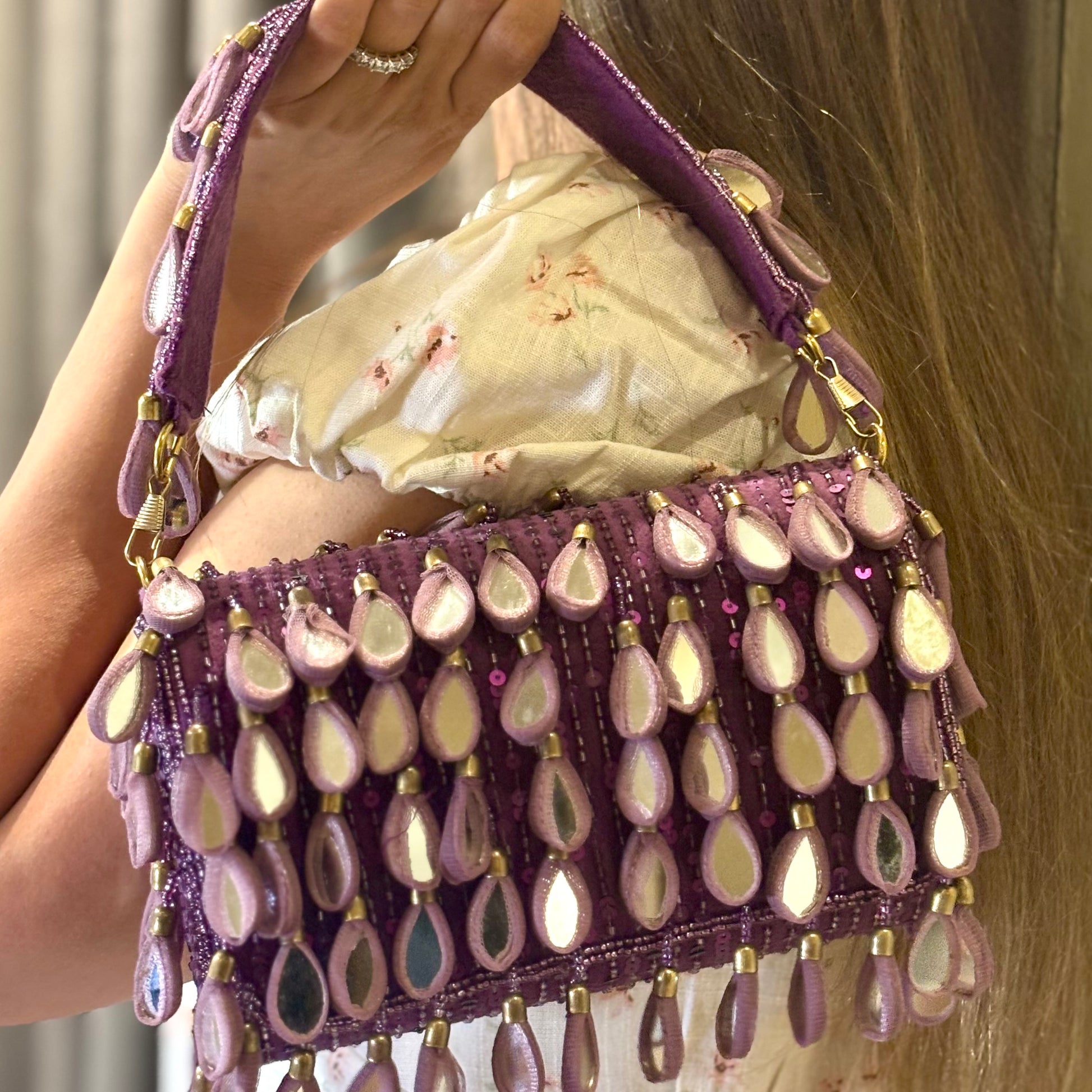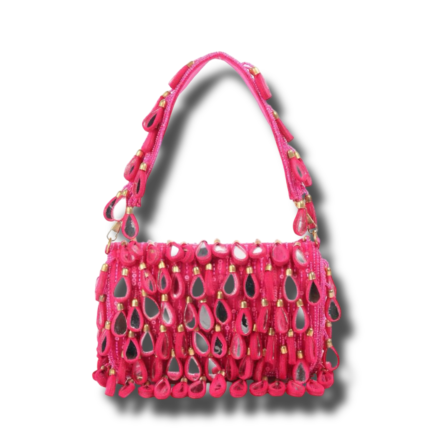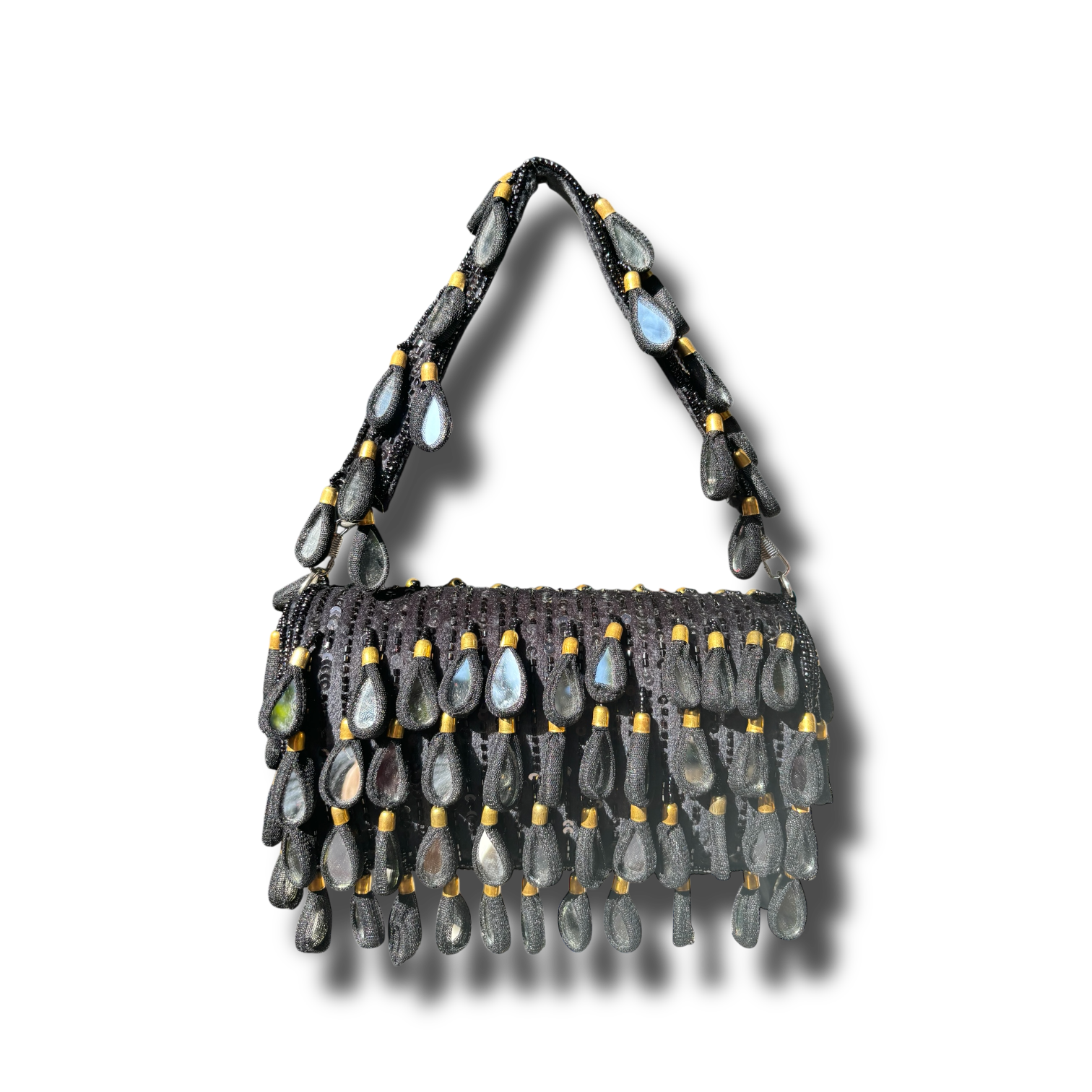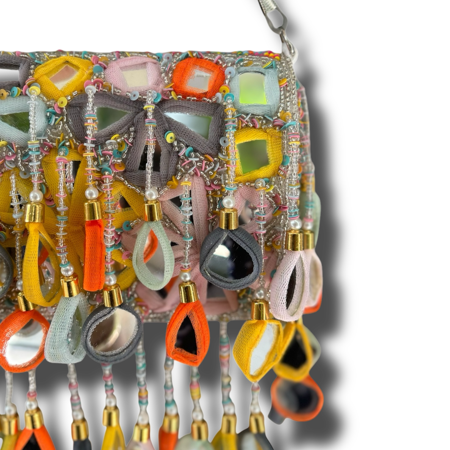 This stylish bag is equipped with a spacious interior and trendy mirror tassels, perfect for all your essentials. A versatile and fashionable choice for any occasion.