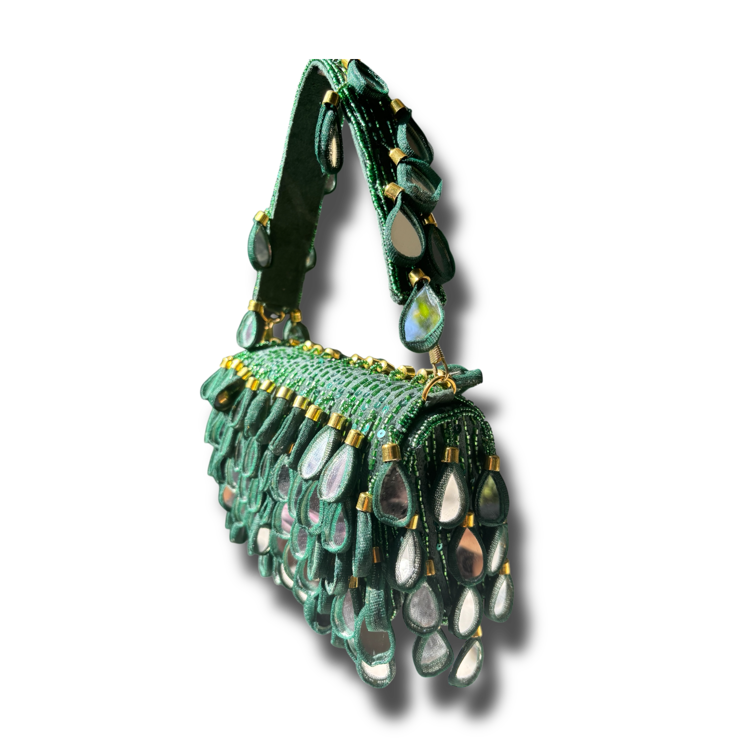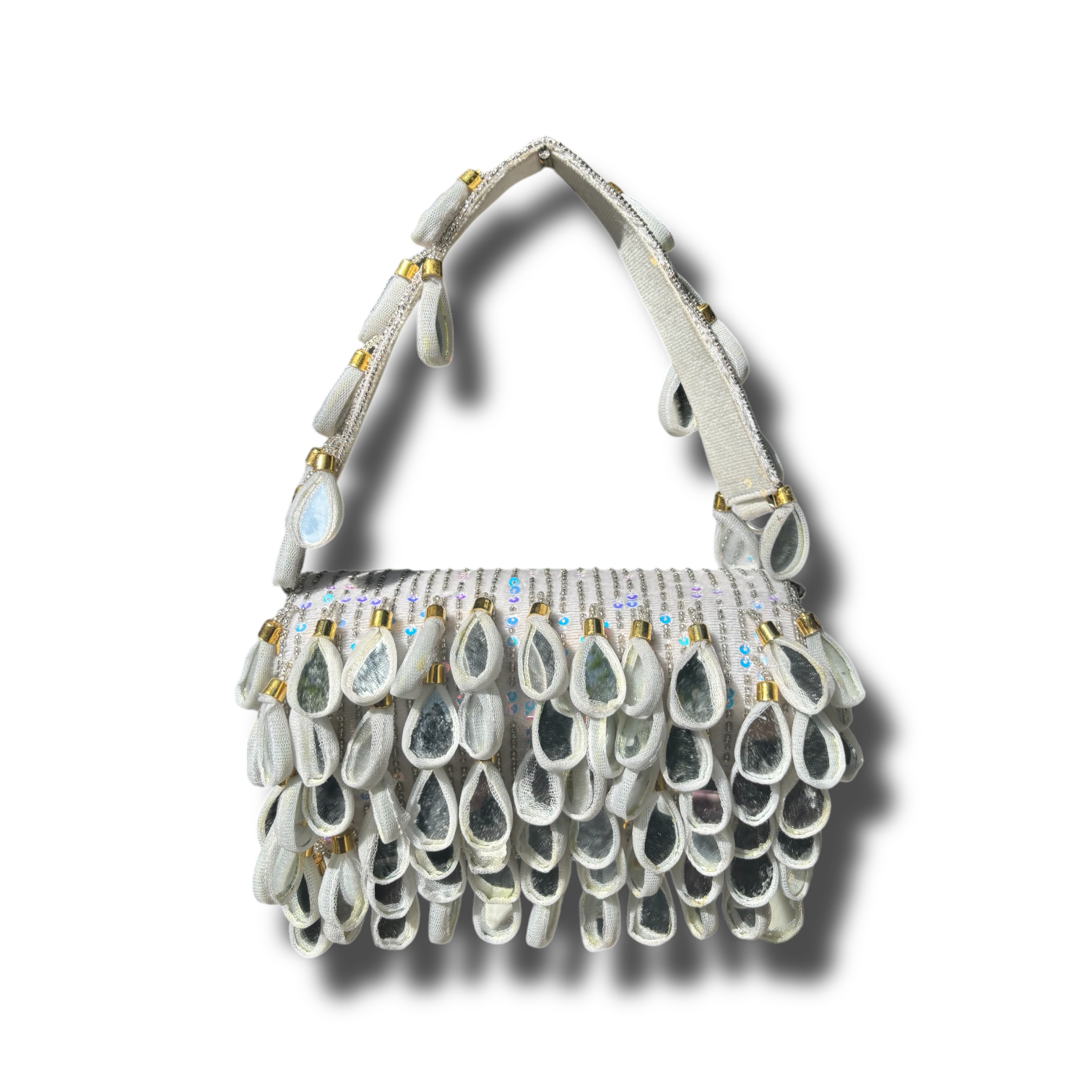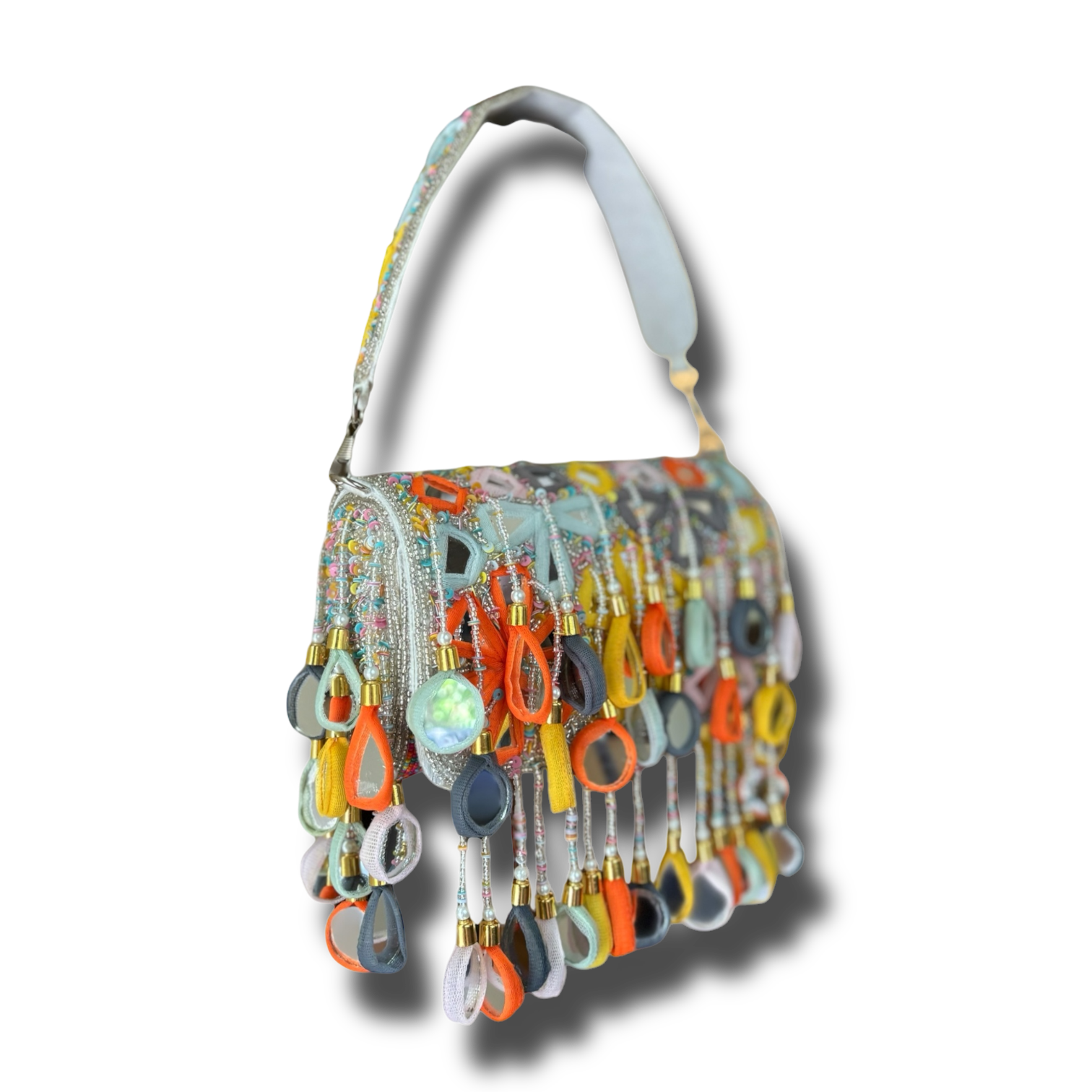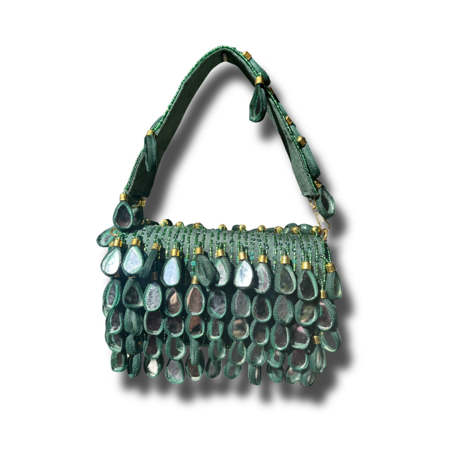 This stylish bag is equipped with a spacious interior and trendy mirror tassels, perfect for all your essentials. A versatile and fashionable choice for any occasion.