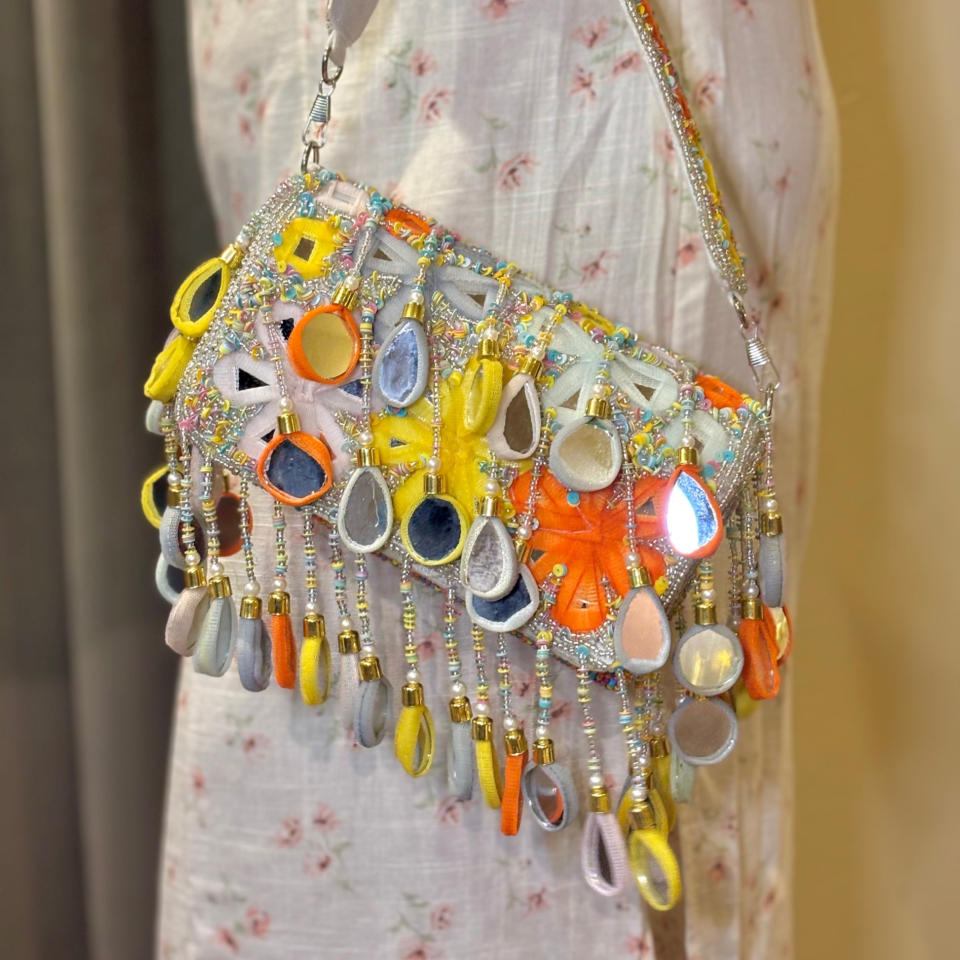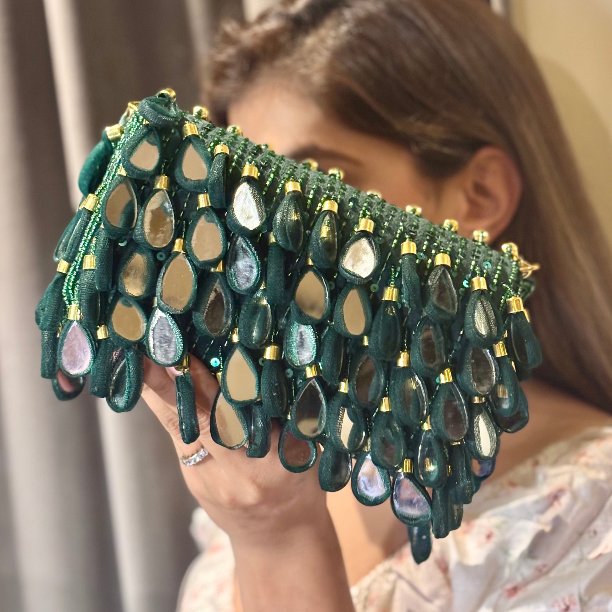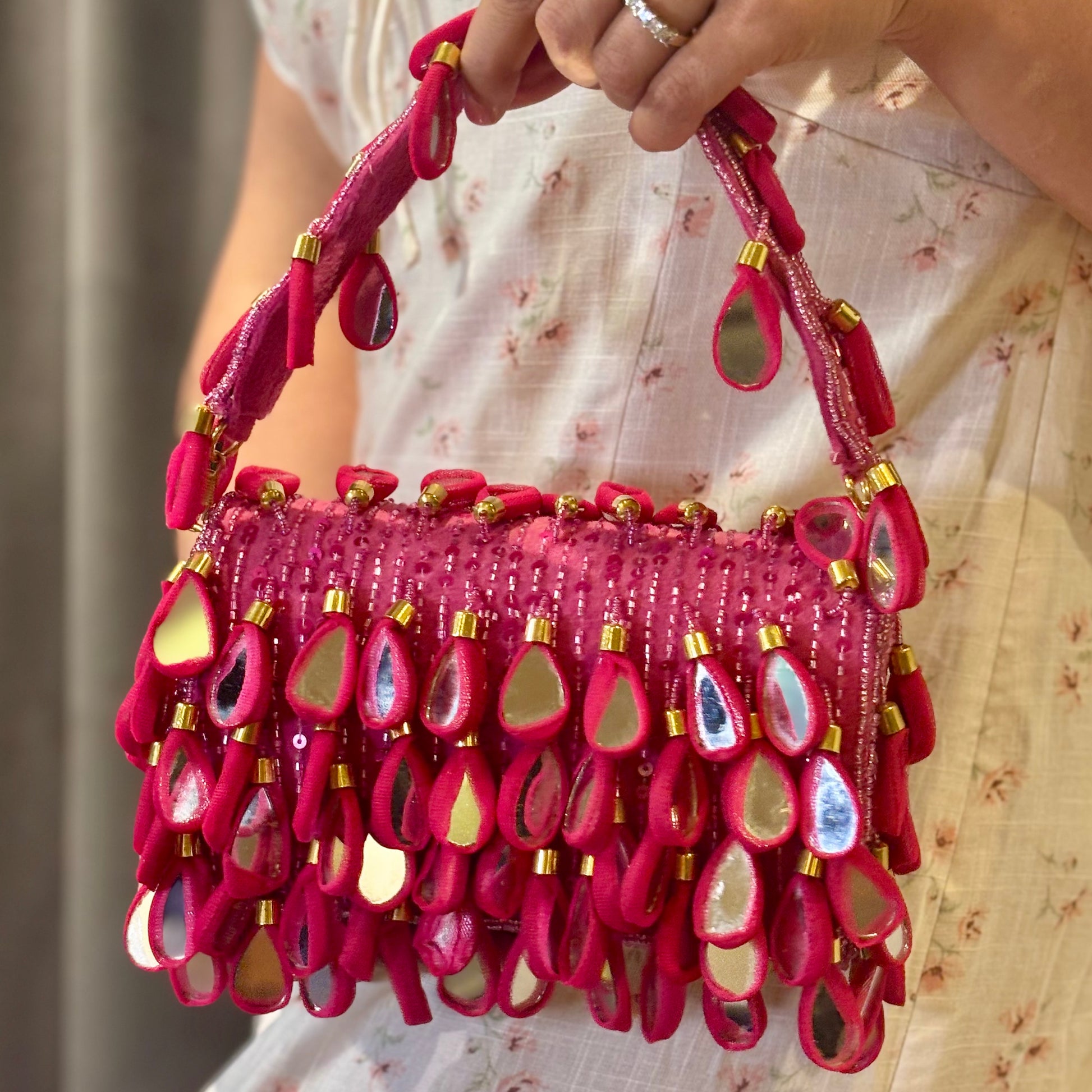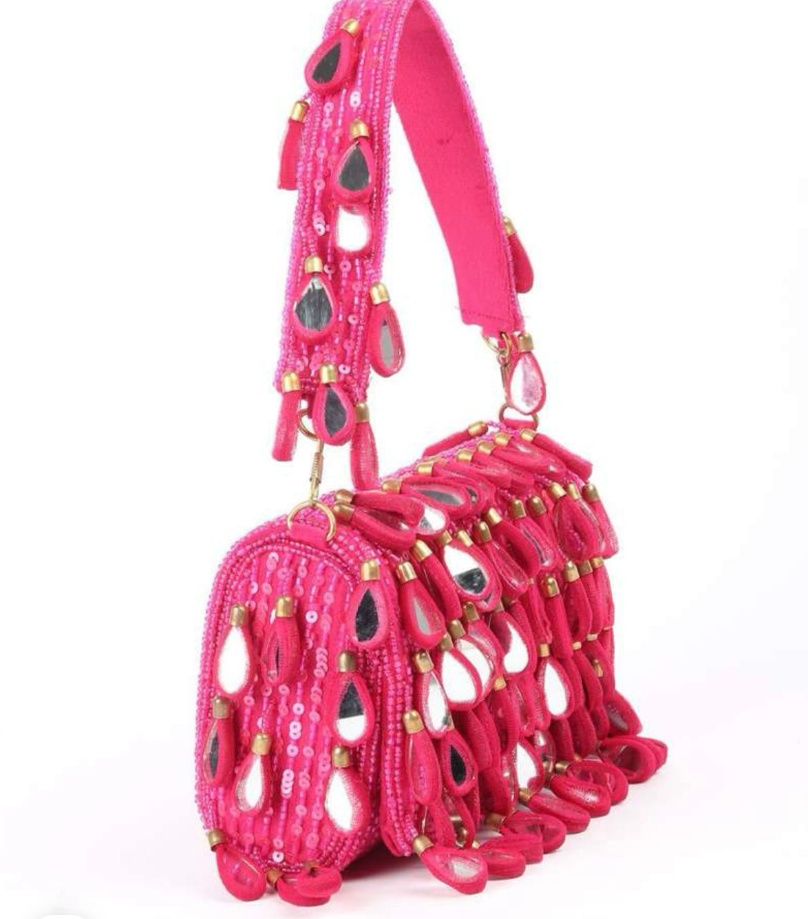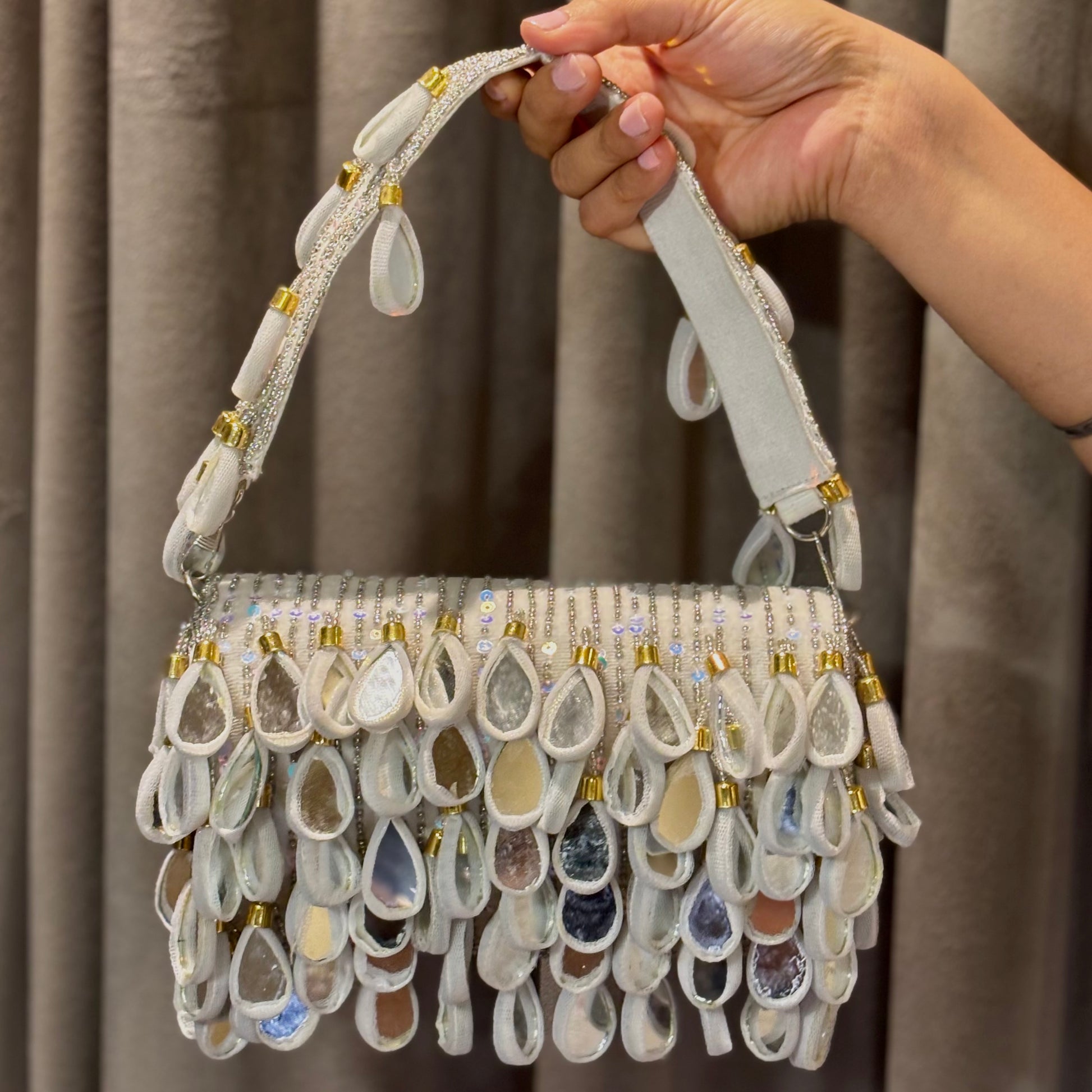 This stylish bag is equipped with a spacious interior and trendy mirror tassels, perfect for all your essentials. A versatile and fashionable choice for any occasion.