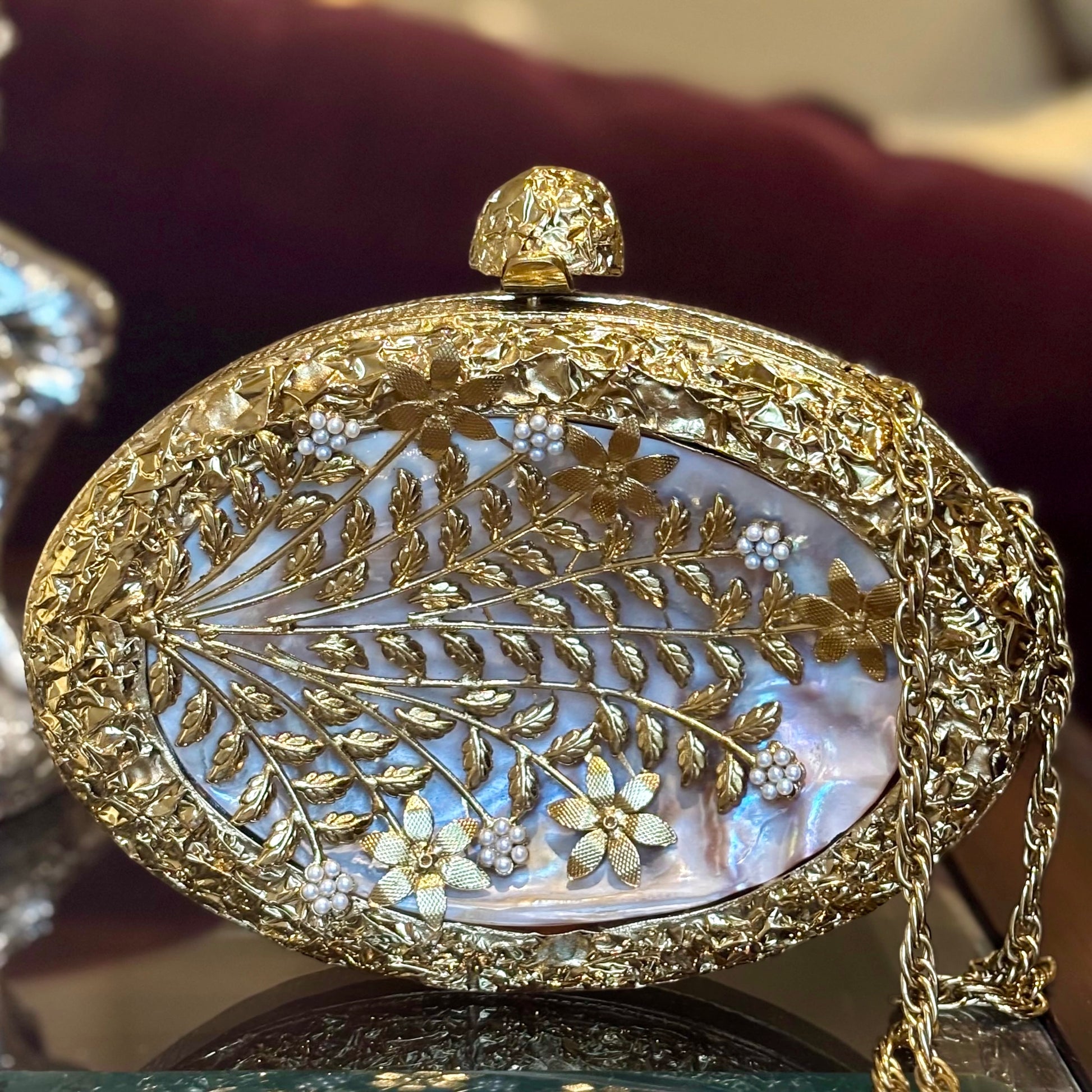This Mother of Pearl clutch features a silver base that adds a touch of elegance to your collection. Crafted with high quality materials, this luxury clutch is the perfect accessory for any special occasion.