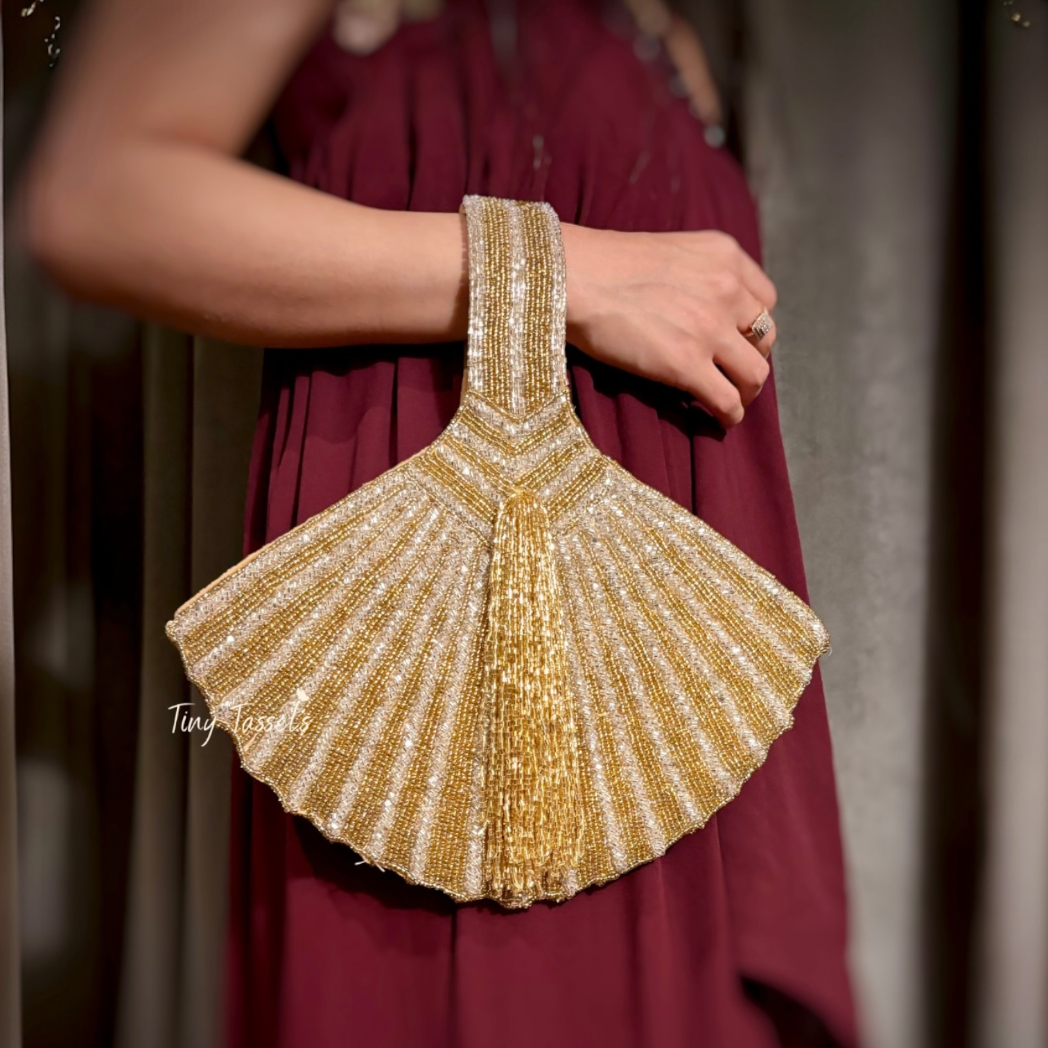 With a fan shape and spacious interior, this bag offers a truly unique design. Perfect for those looking for both style and practicality.