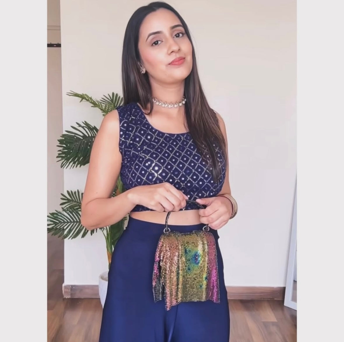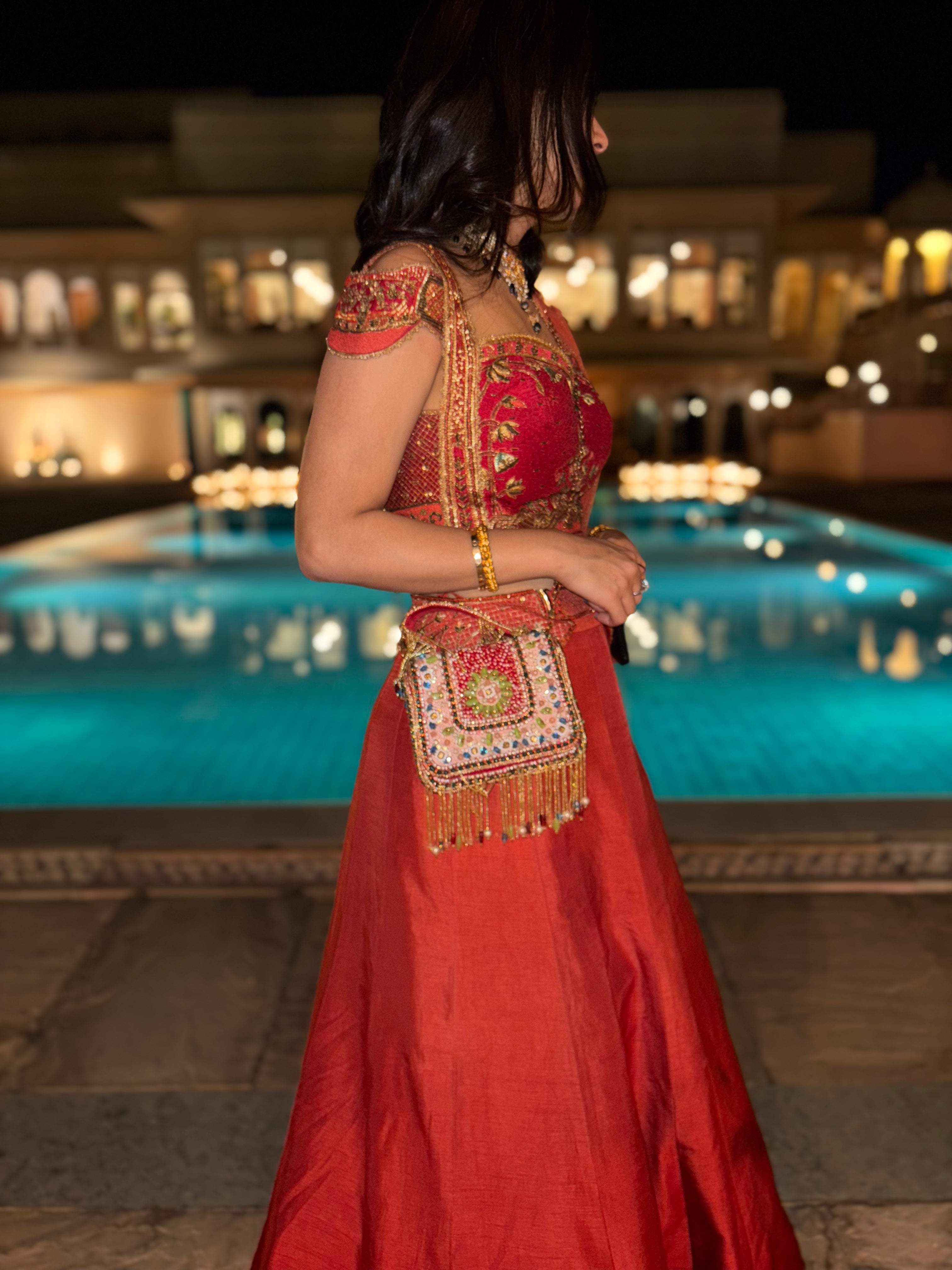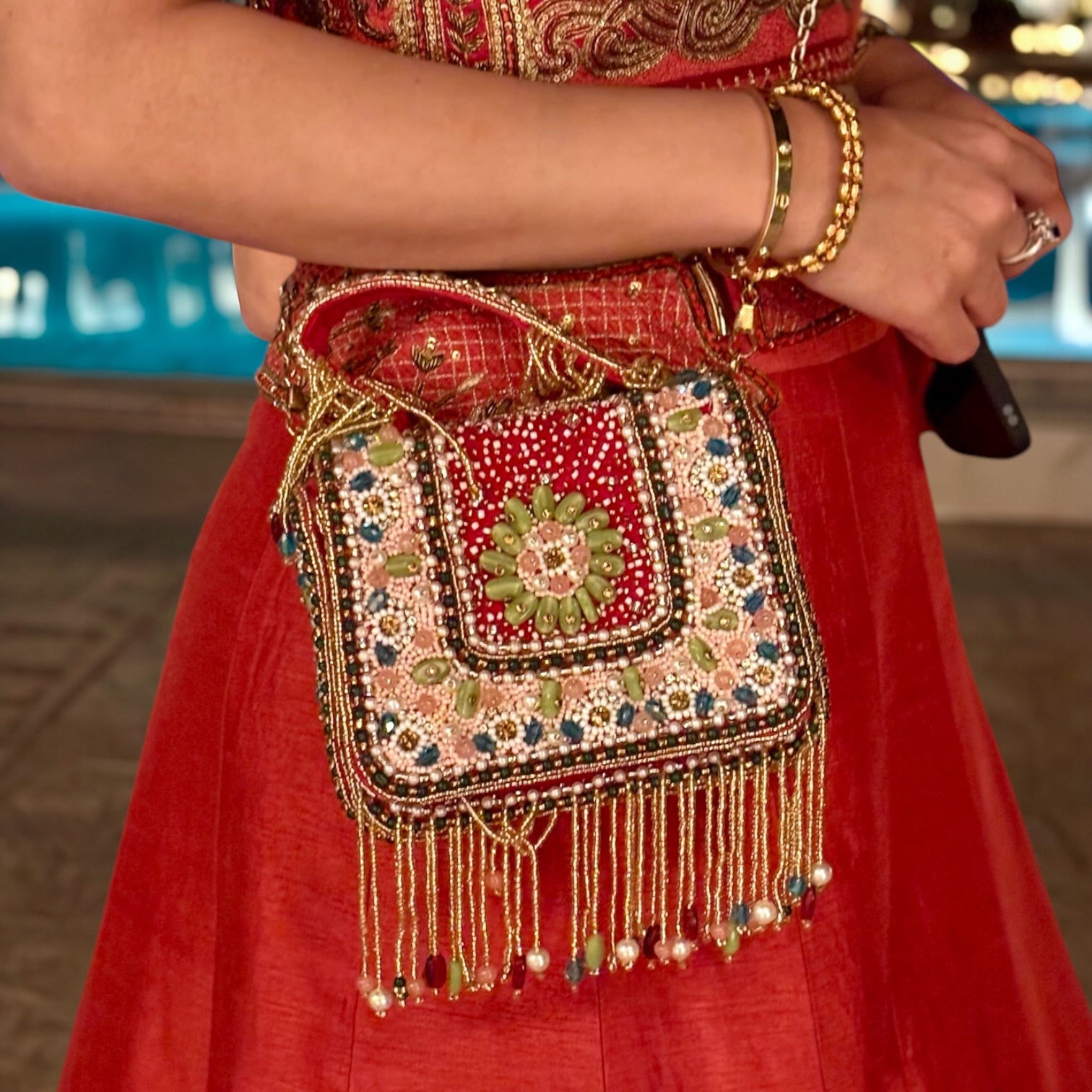 With its intricate heavy beaded work and flap design, this mini bag adds a touch of Indian Culture to your look.
