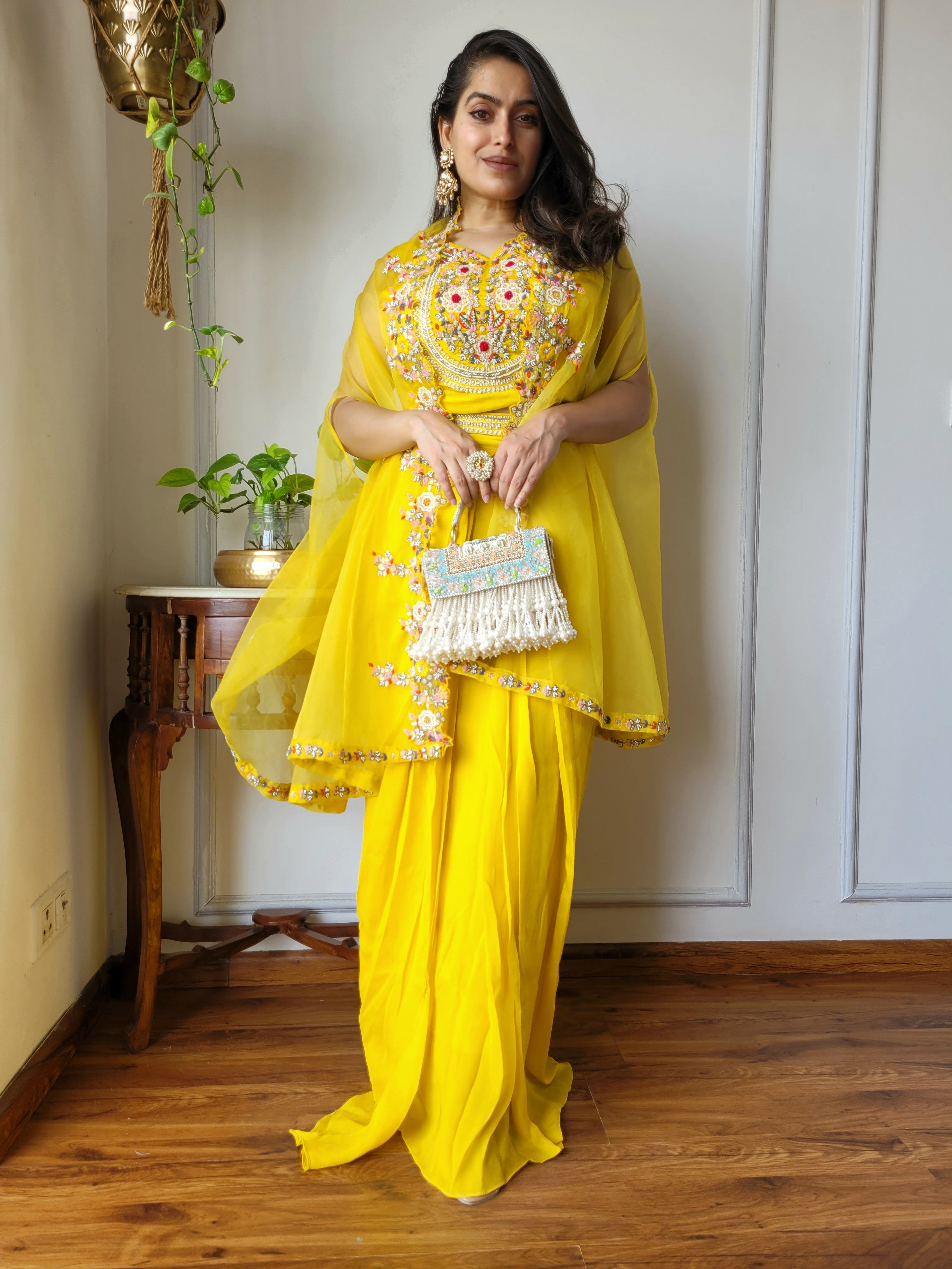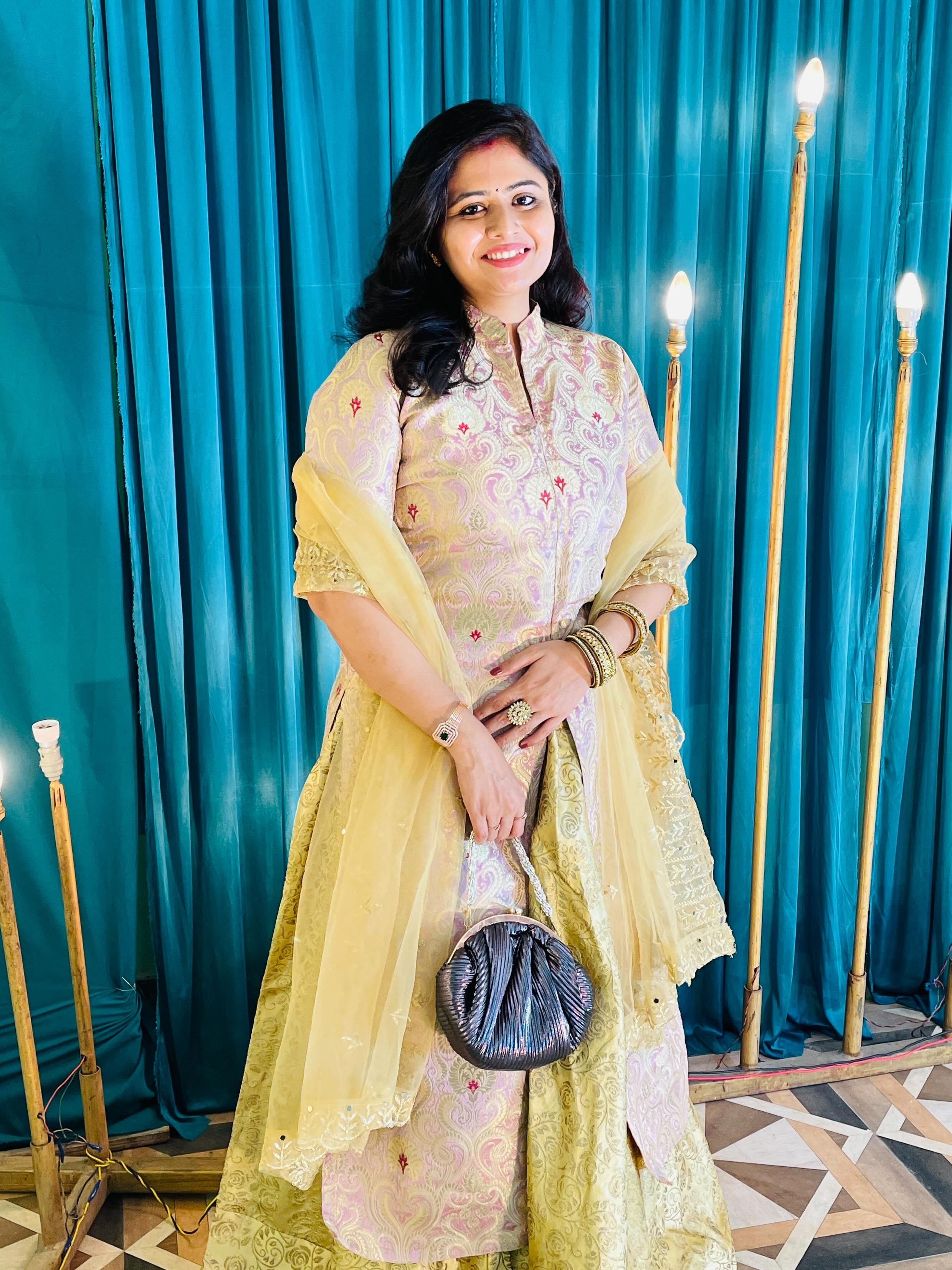 Our valued client MEGHA KAJARIA finishing her haldi appearance with the perfect pairing.
